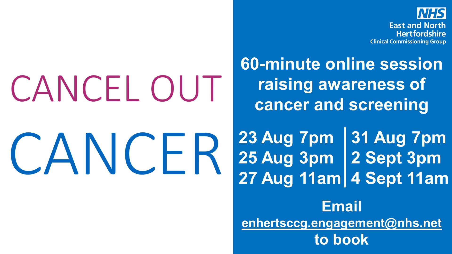 Find out more by emailing enhertsccg.engagement@nhs.net
